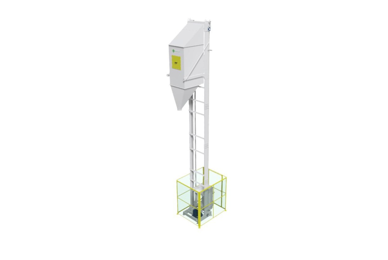 Com acionamento por motoredutor de engrenagens cilíndricas helicoidais tratadas termicamente e retificadas de acordo com a norma AGMA. Estrutura modular construída em aço carbono, com perfis estruturais. Tambor e bica de descarga. Todas as partes em contato com o produto são fornecidas em aço inox garantindo maior durabilidade ao equipamento. E Sistema de elevação feito por meio de correntes com sistema de freio acoplado ao motoredutor.